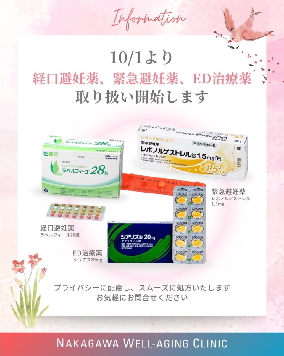 経口避妊薬、緊急避妊薬、ED治療薬 取り扱い開始のお知らせ💊